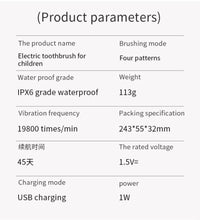 After-sales Service: Free Spare Parts, Installation at Selected Location, Return and Replacement, No, Field Technical Service and Repair Warranty: 1 Year Operating Language: English App Controlled: No Packaging Types: Color Box Rechargeable: Yes Bristle Type: Soft Product Origin: Guangdong, China Name: xbh Age Group: Children's Clothing Models: XBH-001 Vibration Frequency: 19800/min Charging Interface Type: Micro USB Maximum Operating Time: 30 Days Body Material: Plastic Waterproof Rating: IPX6 Type: Sonic Toothbrush Feature: Deep Cleaning, Teeth Whitening, High Frequency Vibration, Smart, Waterproof Bristle Material: Nylon Bristle Electric Voltage: 3. 7V Charging time: 3-5 hours Mode: 4 modes Application: Household, For home use + travel Power source: Electric Product name: Children's electric toothbrush Waterproof: Yes Color: Blue/pink/white Weight: 113g Size: 24. 3*5. 5*3. 2 cm Suitable for: Children OEM: OEM service Style: Portable Smart home Logo: Custom logo acceptable