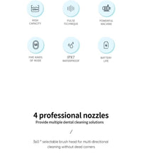 Product Origin: Zhejiang, China Models: CY01 Logo/Graphics Design: Other Rechargeable: Yes Water Tank Type: 300 ml Product Name: Water Flosser Function: Clean Teeth Operating Modes: 3 Operating Modes Water Tank: 300 ml Waterproof Level: IPX-7 Color: White, Black, Pink, Blue Usage: Oral Cavity Pulse Frequency: 2000 pulses/min